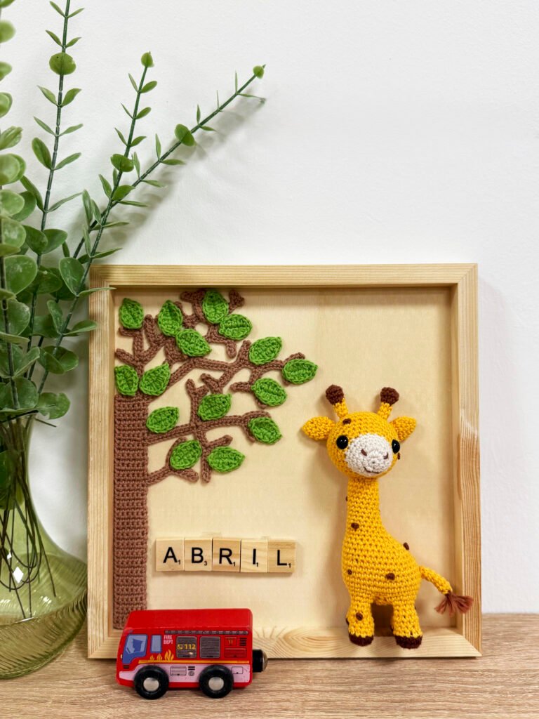 Cuadro artesanal hecho con crochet. Ideal para llenar de ternura la habitación de los más peques.